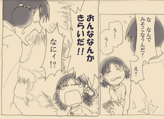 こんな毛人やとーちゃんだったら 王子やよつばじゃなくたって泣きます でも王子の毛人への縋り方って 恋というよりもうそれ以上に必死というか 切実だったと思うわー 厳密には(厳密でなくとも) ボーイズラブの話じゃないと思います なんかもうそれ以上のという感じで余計辛い こんなん描いてから真面目ぶるな自分